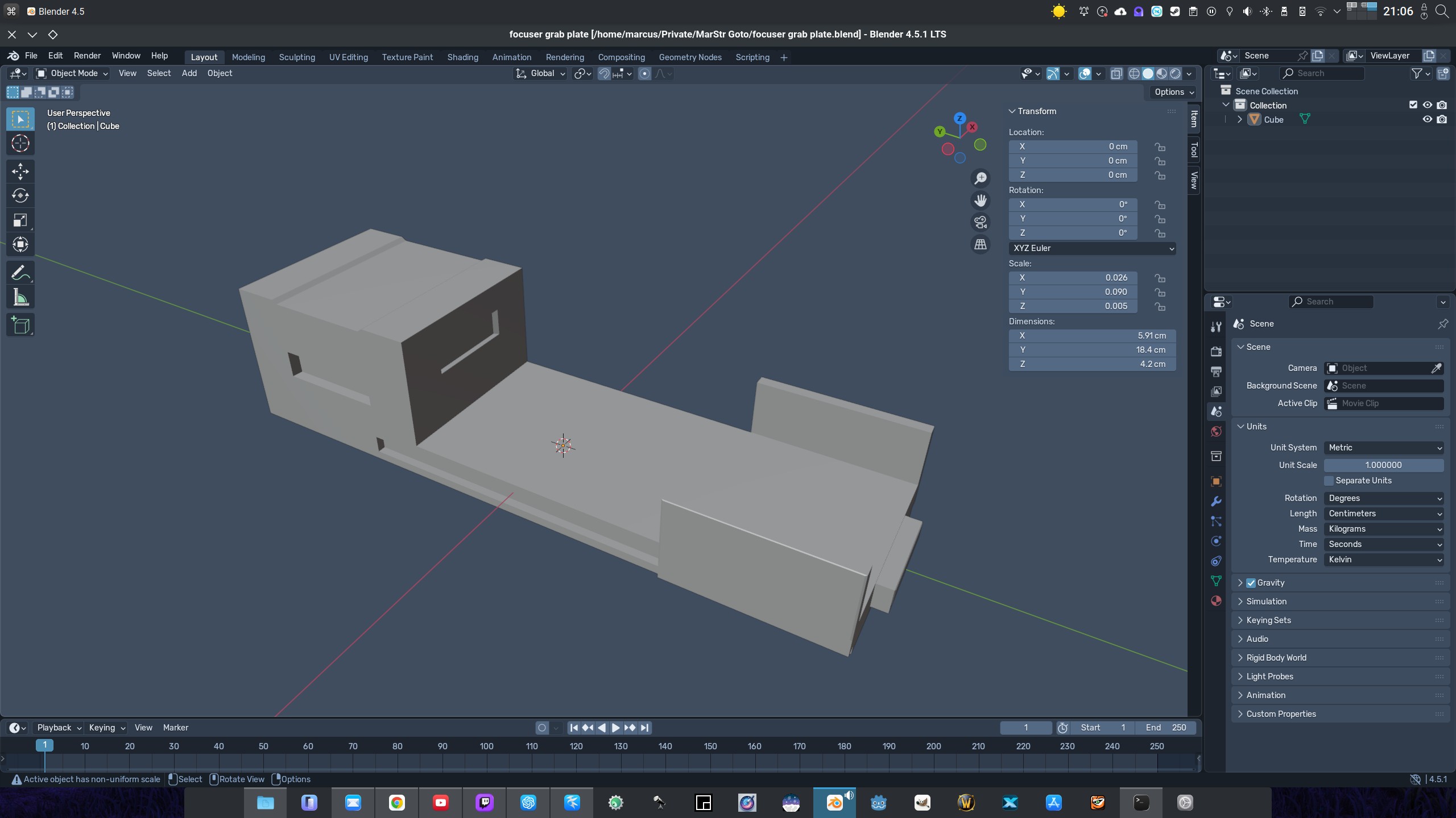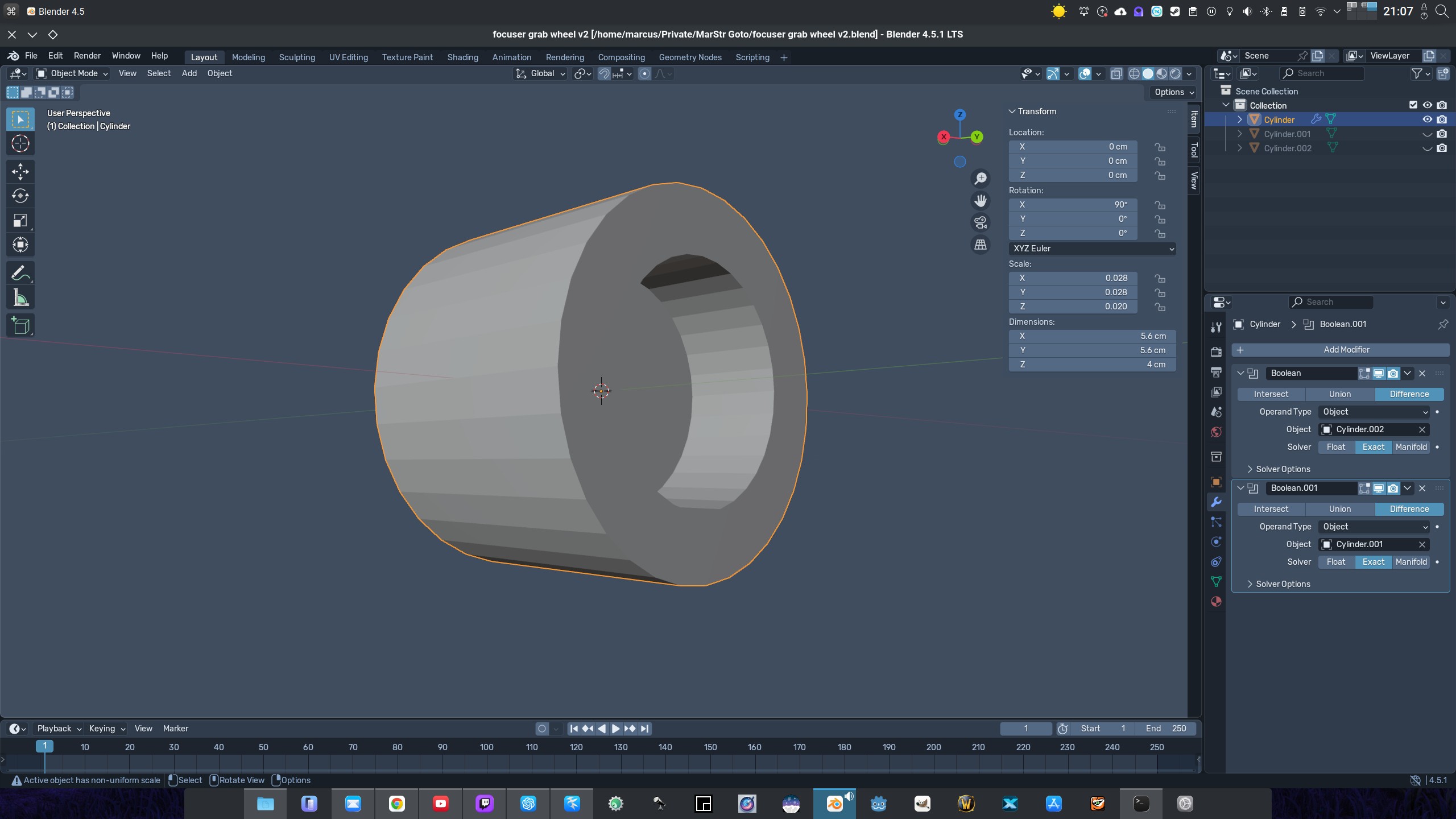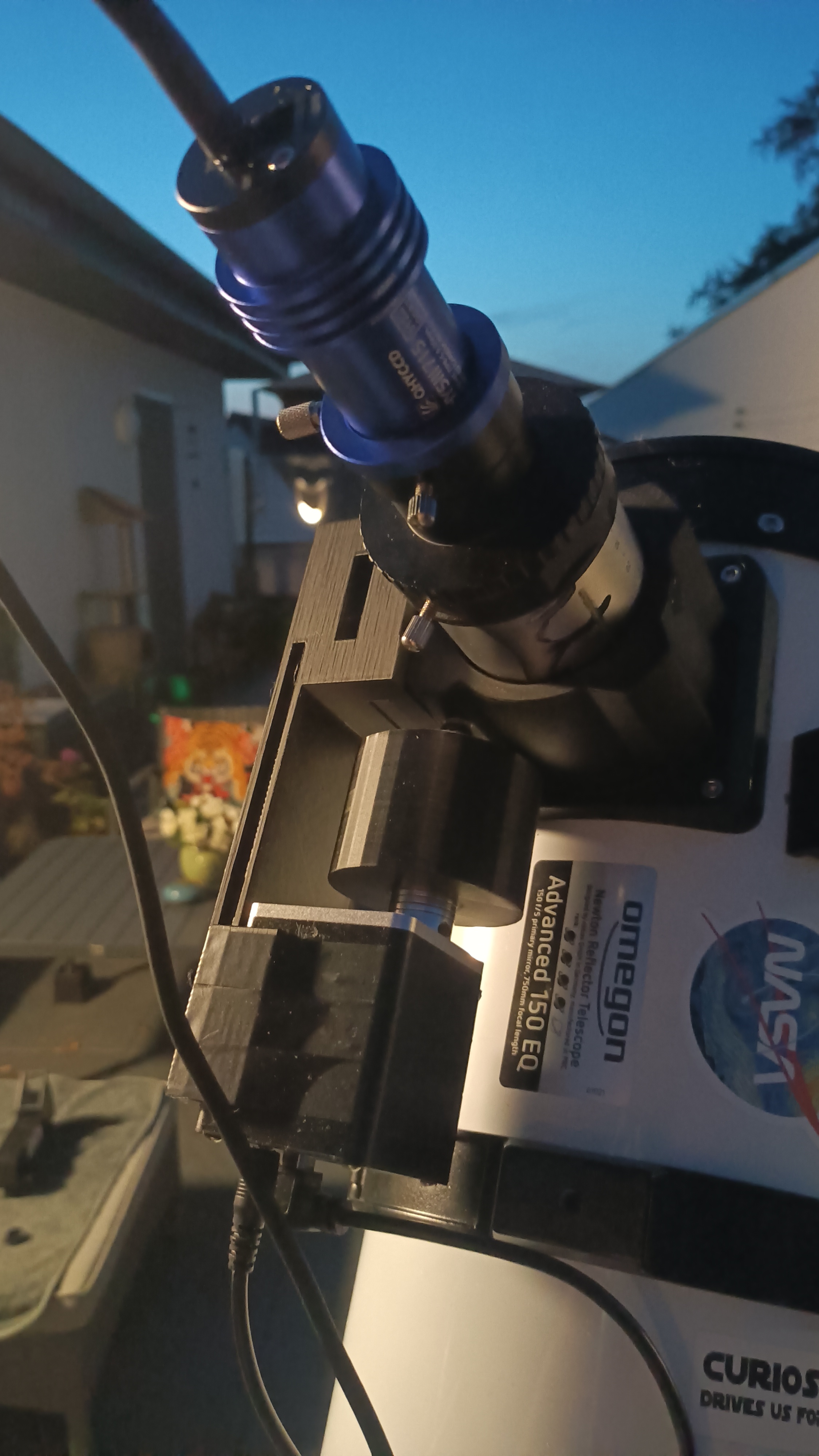 Gepostet: 29.01.2026, 13:33 Weil mich es doch sehr stark verwundert hat, dass EAF-Geräte wie beispielsweise der Gemini (den ich habe) nur an bestimmte Arten von Teleskopen montiert werden kann, habe ich mir überlegt wie ich den Fokussierer trotzdem an meinen Tubus bringen kann. Denn auch ich wollte in den Genuss der automatischen Fokussierung für den Sternenhimmel kommen. Ich habe ein Omegon Newton 150/750, also ein f/5 Tubus. Damit kann man nicht nur ganz normal schon sehr viele Sterne durch das Okular erkennen, sondern in der Tat auch gelungene Fotos mit machen (vorrausgesetzt der Himmel und das Wetter spielen mit). Also habe ich ein paar Maße der Okularhalterung genommen, sowie auch den nötigen Abstand berechnet damit 1) der Fokussierer gehalten und 2) entsprechend auch bewegt werden kann. Das Ergebnis sind zwei Einzelteile, die man bequem in einem 3D-Drucker produzieren kann - und genau das habe ich auch getan. Das Hauptteil ist die Halterung selbst, die mit einem Ende an der Okularhalterung befestigt wird, beispielsweise mit Sekundenkleber (oder auch mit einer Klebepistole). Am Ende dieser Halterung wird der EAF zwischengesteckt. Das zweite Teil ist ein relativ solides "Rad". Es hat zwei Aussparungen. In die große Aussparung wird das Rad gedrückt, mit dem man normalerweise das OKular fokussiert. In die kleine Aussparung kommt die Feder, die bereits vorher mit dem Motor vom EAF verbunden wurde. ACHTUNG: Die Halterung, das Rad, sowie der Fokussierer selbst haben Gewicht - das bedeutet, dass man Last auf die Tragefähigkeit des Tubus addiert. Ausserdem wird der Schwerpunkt verändert - es ist also erfoderlich, den Tubus nach der Installation neu zu tarieren! Die Teile im Detail: ![]() ![]() Und das finale Produkt verbaut an meinem Tubus: ![]() Der Fokussierer lässt sich auch weiterhin bequem manuell bewegen, so dass ich nun auf beide Weisen fokussieren kann. Allerdings macht der Gemini schon einen sehr beeindruckenden Job. Download: Halterung Fokussierer-Rad Astrofotografie |